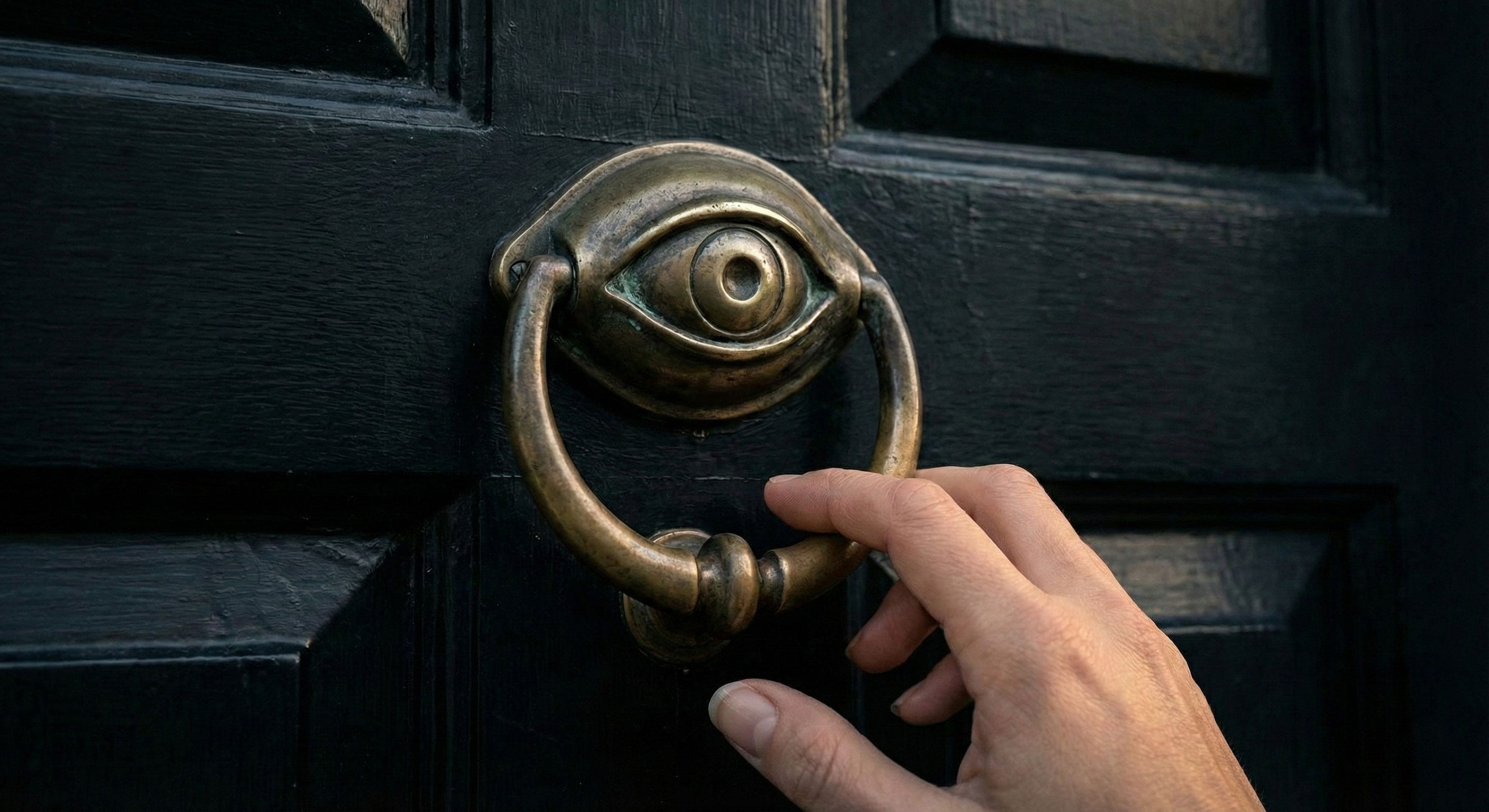 An unseen magnetism seized Julian’s arm, dragging his hand toward the heavy brass with a strength that brooked no resistance. Julian reached for the knocker—the metal felt warm, pulsing like a living eyelid—but before he could release it to make a sound, the door swung inward on silent hinges.