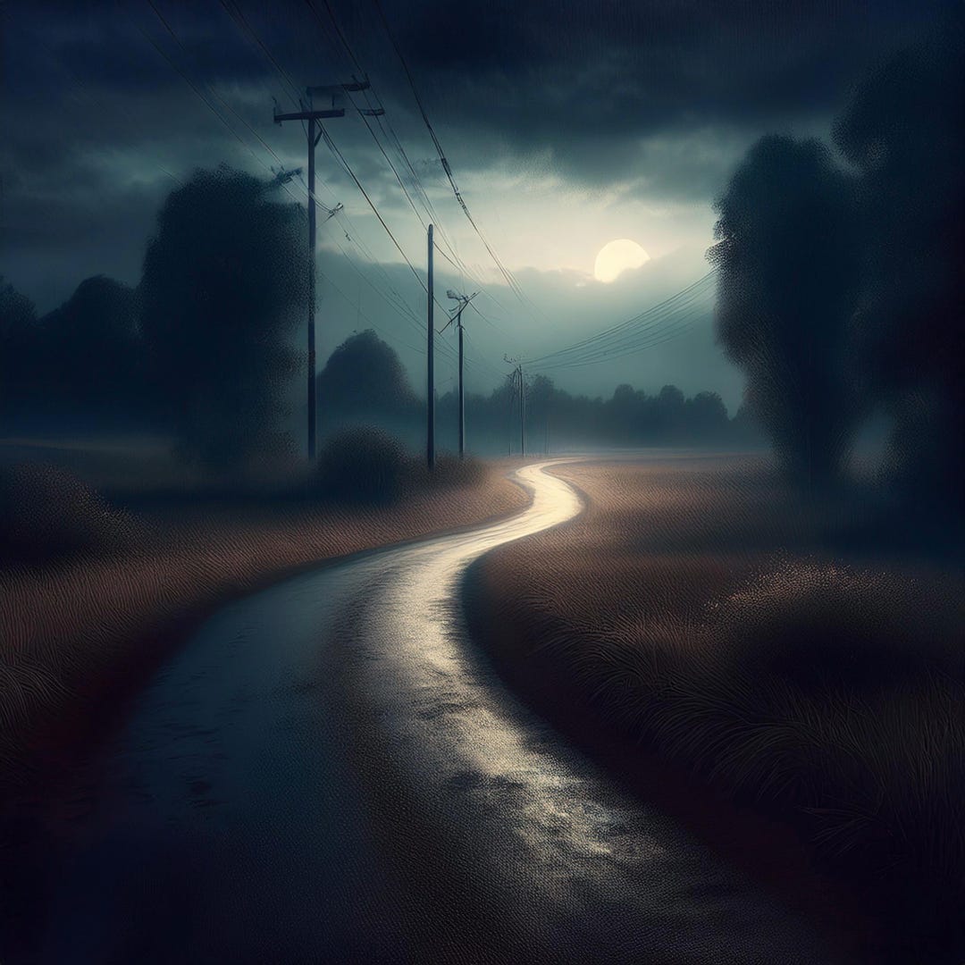 As they approach a familiar bend in the road, the man driving catches a glimpse of something at the edges of his vision—a vaguely human form crossing the road in front of them and vanishing into the tall grass bordering the blacktop. He unconsciously touches the brake pedal, slowing the vehicle slightly. Had he really seen something, or had it been merely an illusion, a trick of the fading light? Why would anyone be walking along this desolate road at this hour? It’s a reckless act tantamount to suicide in this part of the country. Yet, an inexplicable urge, a primal instinct, compels him to stop, to investigate, to understand the anomaly that has disrupted the familiar rhythm of his journey.
